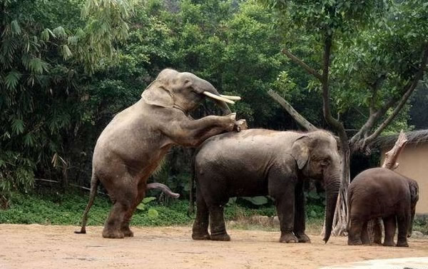 大象交配爱用“狗仔式” 阴茎折弯才进得去