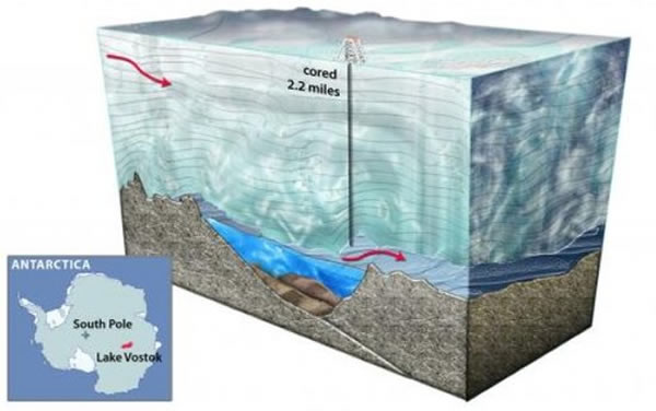 俄罗斯南极和北极研究院的科学家成功采集沃斯托克湖2英里的物质样品,年代可以追溯到2千万年前。沃斯托克湖靠近南极洲的中心,由于地热的作用,在近2英里冰层的覆盖下的湖水仍然是液态。自从1996年被发现以来,研究人员渴望向下钻取以收集湖水样品,尽管如此,科学家们担心的是钻探过程中会将表层的物质带入,造成湖水或者采集的样品受到污染。
