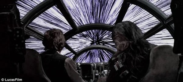 这些超级飞船都配备了超空间引擎,电影情节中描述了随着速度的增加并接近光速,窗外每一颗恒星光线就会被“拉伸”开来,但研究人员并不认为是这样的,实际上他们会看到明亮的中央“光盘”。当然,超光速航行的宇航员需要对眼睛进行防护外,也应该保护自身免受X射线辐射的危害,由于多普勒效应,宇航员将看不到恒星的任务迹象,电磁波的波长将变短,频率增加,因此千年隼飞船中的乘员所看到的恒星光会减少,并“转向”为X射线波段。随着宇宙微波背景辐射进入可见光谱,他们就只会看到窗外出现明亮的中央圆盘。