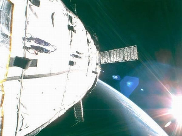 位于轨道上进行测试的毕格罗空间站验证模块,可以清楚地看到太阳能电池板。