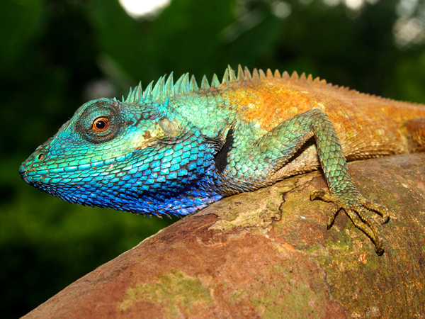 The colorful lizards can be spotted from far away, even in the deep Vietnamese rainforest.