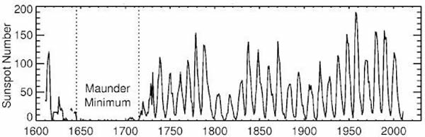 研究人员认为,太阳活动跟蒙德极小期之间很可能存在许多关联。蒙德极小期是17世纪至18世纪早期缺乏太阳黑子的70年,是小冰期最冷的一段时间,当时欧洲和北美经历了极为寒冷的冬季。这种区域性的降温机制可能是太阳极度紫外线辐射量降低造成的,然而这只是推测。