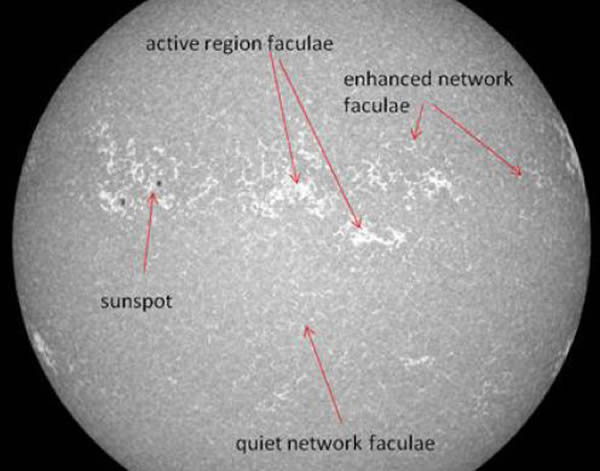 太阳光球外层的图片显示了明亮和黑暗的磁结构,这些磁结构造成了太阳辐射总量的变化。