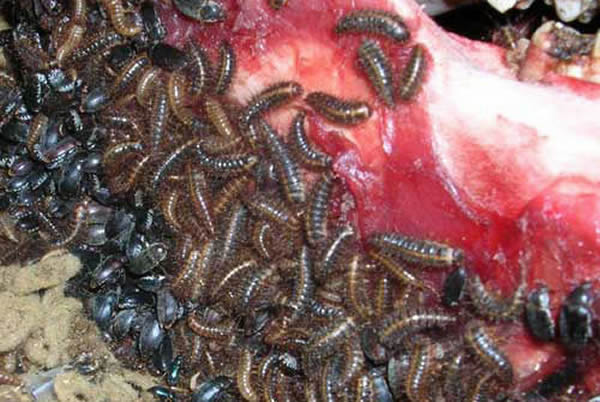 对于那些能够吃得下腐肉的昆虫来讲,清理工作是一个异常忙碌的过程,它们专注于往嘴里吃个不停。