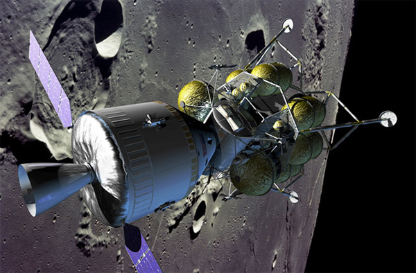 An artist's impression of the NASA's Orion space capsule attached to the canceled Constellation lunar lander -- could this plan be revived?