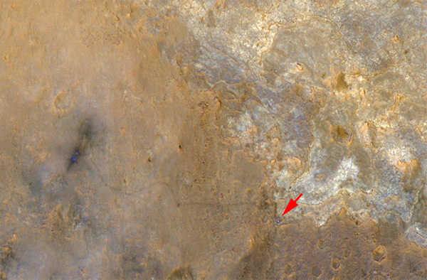 Here's Looking at You, Rover 来源: 神秘的地球 时间:2013年7月28日 14:20 Here's Looking at You, Rover As Mars rover Curiosity continues its trek across Gale Crater, it's orbiting cousin, NASA's Mars Reconnaissance Orbiter, is keeping a watchful eye on its progress. NASA/JPL-Caltech 上一篇 下一篇 TAG: Mars Space space