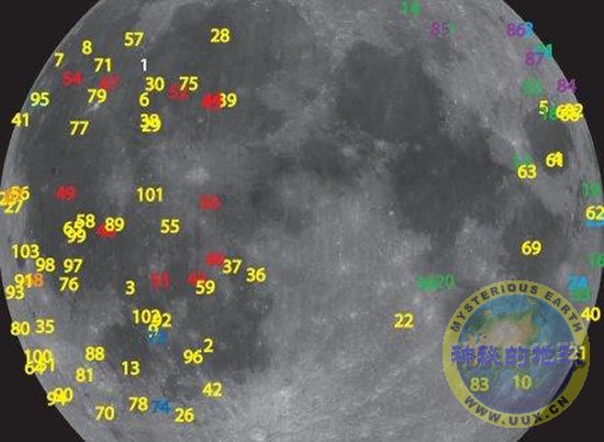 美宇航局科学家记录的100余次月面闪光位置分布图