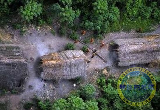 航拍亚马逊与世隔绝印第安部落 印第安人企图向飞机射箭