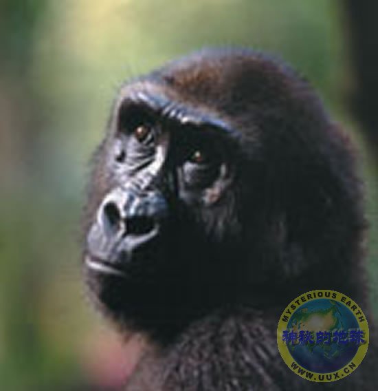 加蓬蒙巴萨保护区的一个西非低地大猩猩(Michael Nichols/National Geographic),它正摆出一副很像人类的架势。