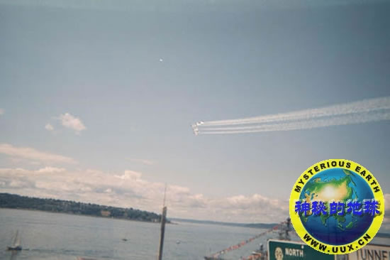 美国西雅图上空的UFO 来源: 神秘的地球 时间:2007年9月16日 14:02 1999年8月15日,出现美国西雅图上空的UFO,当时刚好美国“蓝天使”(Blue Angles)飞行表演队正在西雅图进行飞行表演。 上一篇 下一篇 TAG: UFO 美国