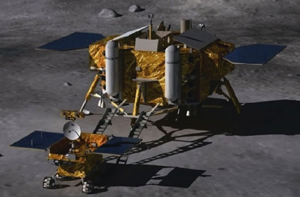 The Chang'e 3 lunar lander and moon rover is part of the second phase of China's three-step robotic lunar exploration program.