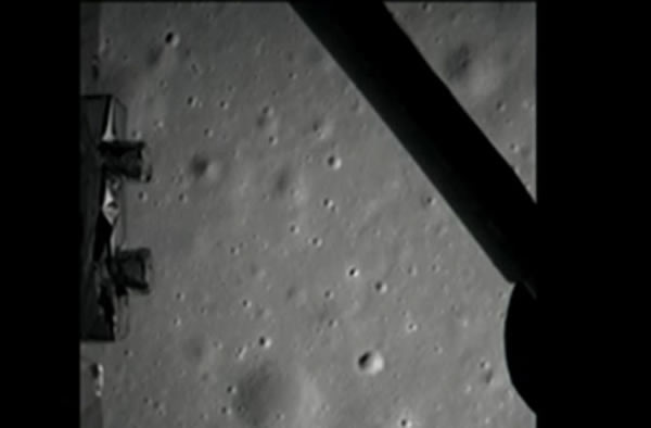 Chang'e 3 transmitted live images as it neared the surface of the moon.