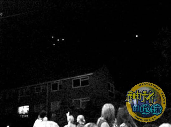 2007年7月一个周末,英国沃里克郡晚出现5颗奇怪光点,目击者表示,光点没发出半点声音,既不像热气球,也不像飞机,速度奇快,不少人相信是不明飞行物体(UFO),在清晰的夜空中停留半小时后消失,吸引近100人驻足观看。对此,英国空中交通管制部则表示,没有不寻常活动的报告。