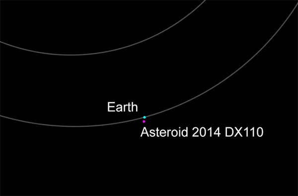 Today, at 4:07 p.m. EST, asteroid 2014 DX110 will zoom past our planet at a safe distance of 217,000 miles (350,000 kilometers). This is a pretty cool nugget of science news as the asteroid, which was discovered on Feb. 28 by the Pan-STARRS project in Hawaii, will careen past Earth closer than moon orbit. Telescopes are primed and the asteroid will be closely observed to find out its mass, composition and orbital characteristics.