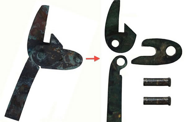 The crossbow triggers and parts found in Emperor Qin's mausoleum.