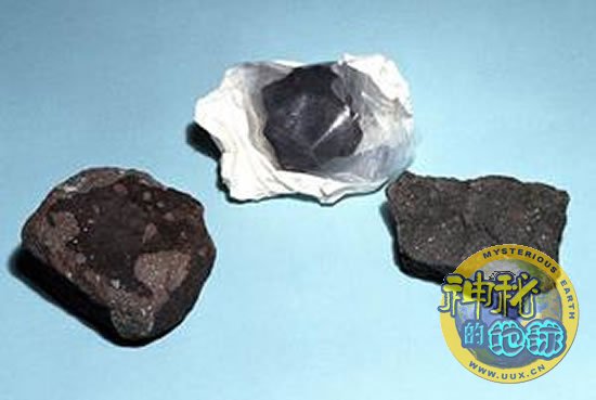 几种碳质球粒陨石:由左至右分别为Allende、Yukon及Murchison。