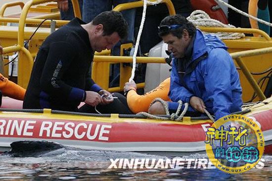 8月22日,在澳大利亚悉尼以北40公里的皮特沃特,专家们准备对迷路的小驼背鲸实施安乐死。
