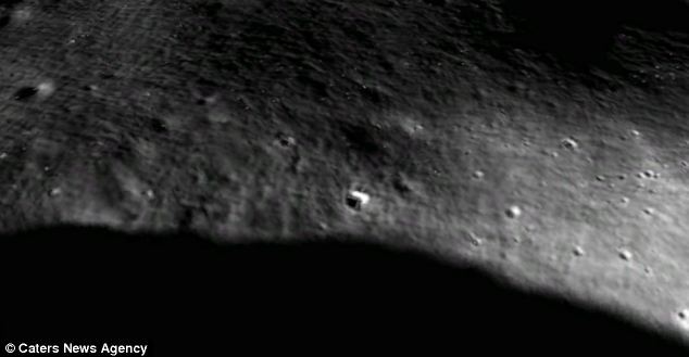 Wowforreel在月球表面发现的三角形奇异物体,坐标为北纬22042'38.46,东经142034'44.52。