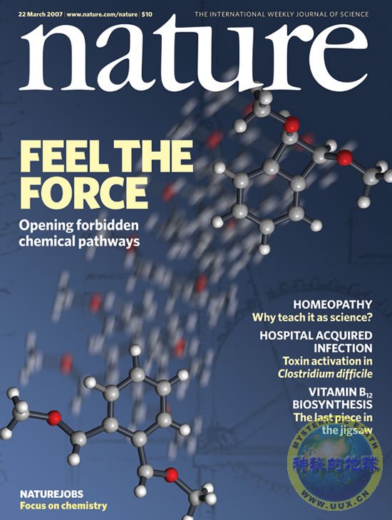 大多数化学反应的进行,需要反应物越过一个能量障碍。通常所提供的能量是热能、光能、压差或电势。现在,令很多化学家感到吃惊的是,机械力也被列在其中。也就是说,对于一个化学反应来说,我们可以把它“推”一把。在超声波的影响下,特殊设计的聚合物的重排反应可以加快,反应通道会出现偏向,产生从纯粹热或光诱导反应不能获得的产物。这些聚合物含有一种mechanophore,其位置在来自拉伸流(extensional flow)的力最大的点上。除了为控制化学反应提供新方法外,这项研究工作还会导致具有机械适应性的材料问世,如能够产生一种信号来警告将要出现的损坏、进行结构改变以减慢损坏速度、甚至自我修复的聚合物材料。