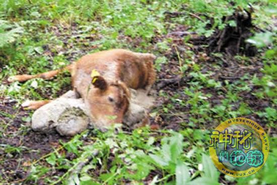 珲春国家级东北虎保护区内被野生东北虎咬死的黄牛