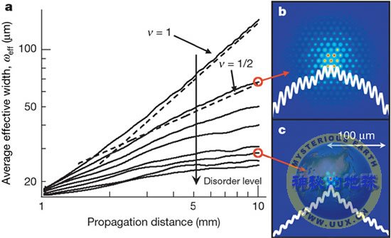 固体物理中最有趣的现象之一是“安德森局域化”(Anderson Localization),它预测当把一个电子置于一个紊乱的晶格中时,这个电子就会被固定。由菲利普•安德森1958年建立的这个模型原是用来解释晶体是怎样停止导电并变成绝缘体的(以及回答它们当中的缺陷密度什么时候增加),几十年来却被用来了解固体结构中的电子性质。然而,真正的“安德森局域化”效应尚未在原子晶体中观测到,因为它们往往会与该模型所描述的情形有所偏差(按照该模型的描述,该现象是一个具有被凝固在了时间中的波动的周期势)。现在,以色列海法技术学院所做的新的研究工作,通过使用一个在其上施加了随机波动的光子晶格,在一个由被扰动的周期势构成的真正的安德森晶格中证实了局域化效应的存在。这些发现提出了与紊乱和非线性之间相互作用的基本性质相关的有趣问题。