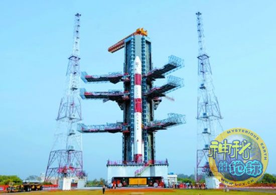 在发射架上的印度大推力运载火箭预定本月发射的“Chandrayaan—1”号