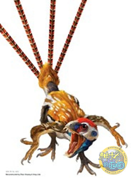 这么小的个子,要那么长的尾巴有啥用呢?小耀龙的前肢虽然比较长,尾椎也极度退化,接近甚至超越了原始鸟类,却浑身上下找不到类似鸟类飞羽的构造,自然还不会飞行了——想来这修长的带状尾羽,并非为飞行而设。
