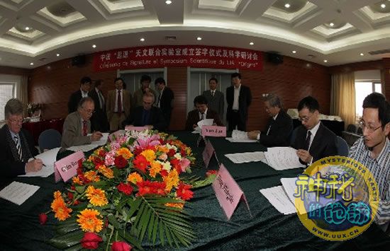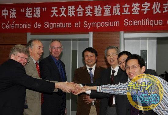 中国、法国“起源”天文联合实验室 来源: 神秘的地球 时间:2008年10月23日 09:31 中国、法国“起源”天文联合实验室 10月22日,中国、法国“起源”天文联合实验室成立签字仪式在北京中国国家天文台举行。联合实验室将针对“宇宙中的物质和能量的起源问题”“星系和重金属元素的起源问题”“行星的起源问题”等三方面天体物理研究进行合作。中国国家天文台、北京大学、南京大学和中国科技大学等11个研究部门参加这个联合实验室的研究工作。 这是签字仪式现场(10月22日摄) 新华社记者 汪永基 摄 上一篇 下一篇 TAG: 法国 起源 实验室 天文 中国