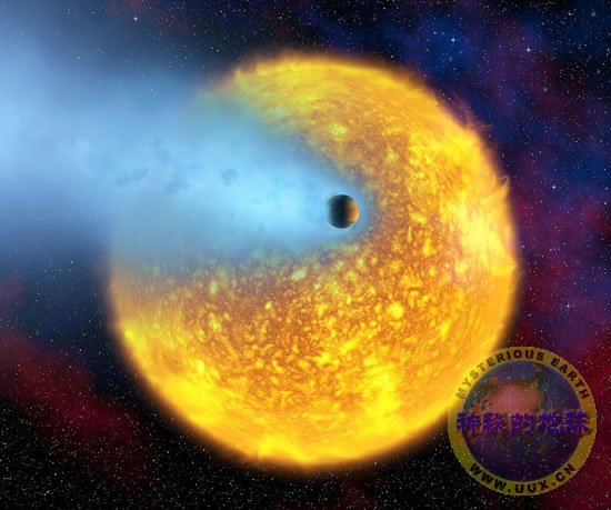“热木星”HD209458b的最新观测结果 来源: 神秘的地球 时间:2007年11月13日 16:25 “热木星”,即在距离非常近的轨道上绕其母恒星运行的太阳系外巨型行星,将改变我们关于什么是行星以及它们怎样形成的观点。尤其是编号为HD209458b的一颗“热木星”,它被发现有一个巨大的、逃逸的大气层,这个大气层形成了一个彗星一样的尾巴。“哈勃太空望远镜”对HD209458b的新的观测结果显示,其大气层中有一个很热的致密层,在这个致密层中,温度上升,大气膨胀,气体加速逃逸该行星。这一探测为研究太阳系外复杂的行星大气逃逸过程提供了一个新途径。 “热木星”HD209458b想象图 上一篇 下一篇 TAG: 观测 热木星 HD209458b