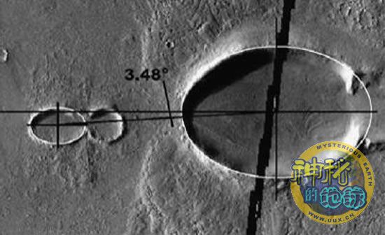 这两个陨石坑相距大约12.5公里,它们拥有相同的椭圆形状和几乎一模一样的东西布局。天文学家也曾在其他地方看到相同的成对陨石坑,其中包括月球上一对被称作“梅西耶”的陨石坑。“梅西耶”陨石坑可能是由一对轨道小行星以较低的撞击角撞上月球表面形成的。但是费尔班克斯阿拉斯加大学的约翰·卡贝洛沃和罗布·赫里克表示,以这种方式在火星表面形成两个陨石坑的可能性仅为2%。
