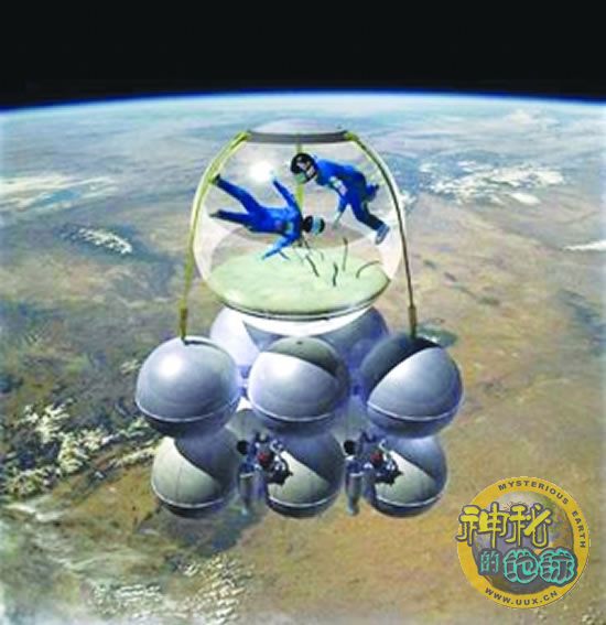 美国犰狳航空航天公司一贯以开发大胆前卫的太空探险项目让人瞩目,日前该公司又宣布推出一项让人瞠目结舌的大胆计划:在2009年之前研制一艘完全透明的球形“鱼缸太空船”,让前往太空旅游的乘客可以在这个“太空鱼缸”中欣赏到360度全方位的壮观太空景色。而且,乘坐“鱼缸太空船”进行太空游的费用也相对便宜,一张船票只要10万美元。