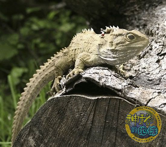 新西兰大蜥蜴是古老爬行动物斑点楔齿蜴的仅存后代,其历史可以上溯到2亿年前。它们通常有3只眼,寿命可达100年以上。大蜥蜴不同于一般的冷血生物,它们通常在夜间活动。这种有2英尺(约0.6米)长的蜥蜴一生中还会多次改变其皮肤的颜色。