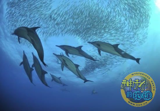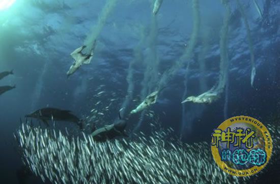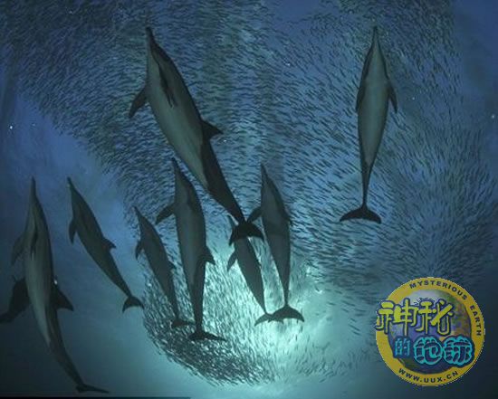 海豚从下面围捕沙丁鱼