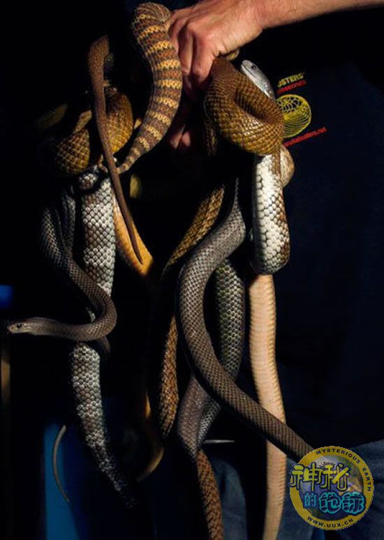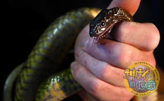 世界上最毒的蛇 来源: 神秘的地球 时间:2008年11月12日 09:46 一条澳大利亚南棘蛇。南棘蛇是世界10大毒蛇之一,它的毒液可以杀死10个成年人。 提取一条海岸太攀蛇的毒液,随着澳洲天气变暖,许多毒蛇开始活跃起来。 海岸太攀蛇是世界第二大致命毒蛇,它的一口毒液可以杀死50个成年人。 内陆太攀蛇,是世界毒性最强的毒蛇。它每咬一口释出的毒液足够杀死150人。 蛇工手中拿着2条海岸太攀蛇、1条内陆太攀蛇、2条东部布朗蛇、2条虎蛇、1条澳大利亚南棘蛇。 上一篇 下一篇 TAG: 蛇