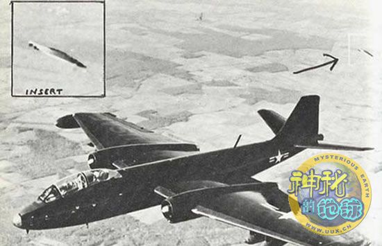 UFO跟踪一架B-47喷气式飞机 来源: 神秘的地球 时间:2008年10月26日 14:49 这张照片是一位空军试飞员在加利福尼亚州的爱德华空军基地附近拍摄的。照片清晰地显示UFO正紧紧跟随一架B-47喷气式飞机。 上一篇 下一篇 TAG: UFO 喷气式飞机