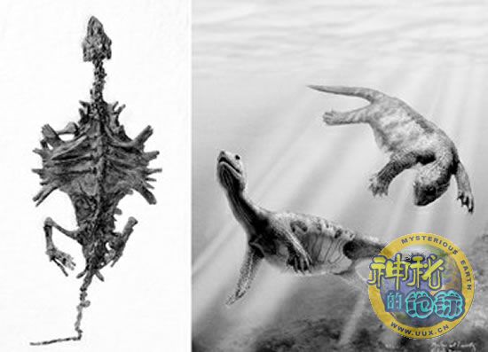 最原始龟类化石及复原图