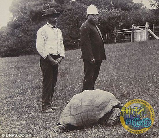 1900年乌龟"乔纳森"和布尔战争战犯合影,当时它已经有70多岁了。