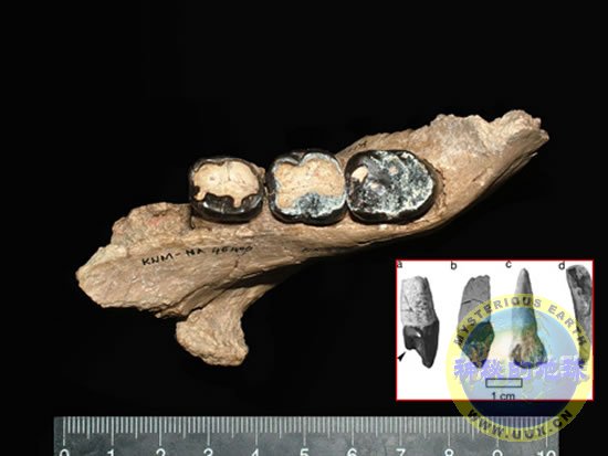 Nakalipithecus nakayamai had such unusual teeth, such as the canine and incisors seen in the inset, that it was placed in a new genus as well.