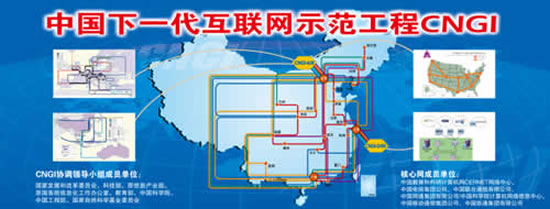 中国下一代互联网示范工程(CNGI)项目由发改委、中国工程院、科技部、教育部、中国科学院、自然科学基金委等八部委联合,上万人参与,产学研用合作,历经5年建成世界规模最大下一代互联网,包括中国移动、CERNET2等6个核心网,273个驻地网,覆盖30多个城市,100多万用户。共申请国内专利619项、国外专利5项。在技术上,真实IPv6源地址认证和下一代互联网过渡等为世界首创性成果,并获得2项国际互联网标准,这是我国首次进入国际互联网核心标准制定。同时,推动并形成了中国的下一代互联网产业群,国产IPv6网络设备的全球市场占有率跃居世界第二。
