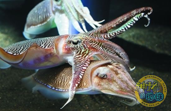 不过,也有例外的情况存在。有一种很小的鱿鱼学名是Heteroteuthis dispar,它的雌性身体里有一个专门储藏精子的器官,可以把精子输到输卵管里。霍文说:“鱿鱼的排卵和受精一般都在体外完成,但是这种鱿鱼说明它也可以在体内完成这个过程。它的精子在排出体外前已经受精了。”