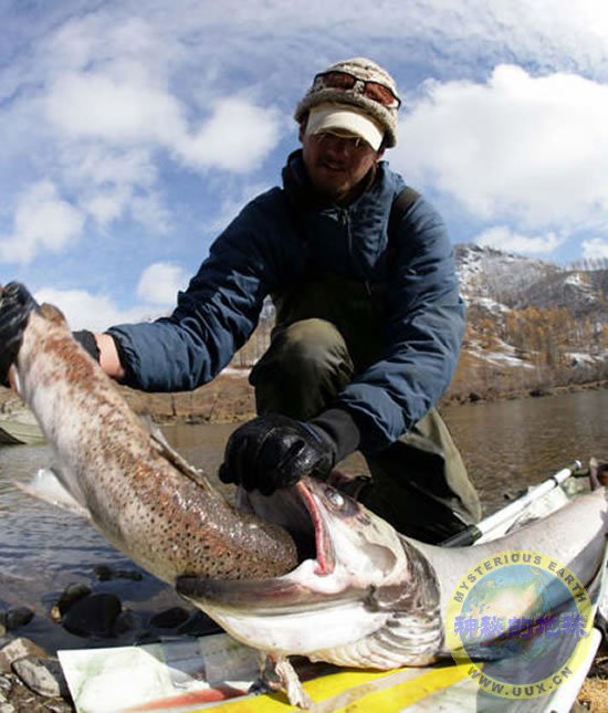 Scientists working in the Eg and Uur rivers in northern Mongolia in 2006 found this 5-foot-long (1.5-meter-long) taimen that had choked to death on a 3-foot-long (0.9-meter-long) taimen.