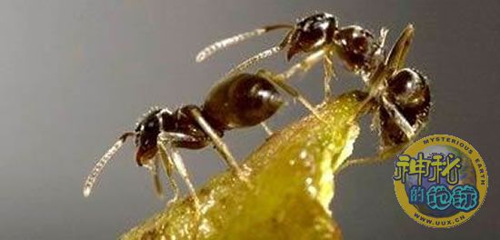 但科学家们同时也表示,在用语音交流的同时,蚂蚁之间的联系往往还要借助触角来共同实现。你仔细观察一下,当一只蚂蚁发现一块食物,它在奔回蚁巢时的行动就会很匆忙,与另一只蚂蚁碰到一起时,就用两根触角互相触碰一下,刺激同伴去找食。这样一个传一个,使更多的同伴受到刺激出来找食。第一个发现食物的蚂蚁在返回蚁巢时,已经在沿途留下了一种特殊的气味,这是从腹尖的肛门和足上腺体分泌出一种叫做路标信息素的分泌物。被动员出来的蚂蚁闻到这种气味就会顺着这个特殊的路标找到食物,并把食物搬运回巢。另外一些视觉比较发达的蚂蚁种类,平时认路主要是靠眼睛,被动员出来的同伴就会用眼睛四处搜寻。