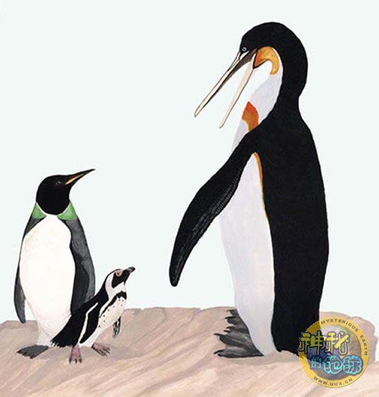 大约三千五百万年以前,曾经有身材像人一样高大的企鹅漫步在南美洲的某些地方,即使没有冰雪环境也能够正常生存……这一幕不是幻想而是现实——来自北卡罗来纳大学的古生物学家朱利亚·克拉克和她的团队在一项最新的化石研究中得到了这一发现。这些化石都是在秘鲁境内的阿塔卡马沙漠中发现的。这一研究详细地描述了新发现的两种企鹅化石,其中一枚化石是一个完整的巨型企鹅头骨,具有极高的科学价值。头骨化石显示的企鹅种类生活在三千六百万年前的现在秘鲁境内地区,是迄今为止发现的第三大企鹅,其站立高度达到了四英尺半(大约一点五米)。有趣的是,它的喙长达一英尺(约合零点三米),相对其身高来说有些不成比例,加上其头骨上网状的纹路和角质的喙鞘,科学家推断它也是靠捕猎鱼类生存的。另一种身材略小的企鹅距今四千两百万年前,身高大约一米,与现存的世界上第二大企鹅---帝企鹅的身材差不多。