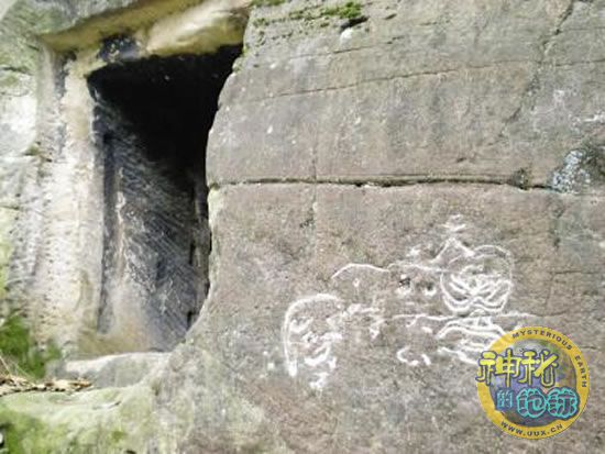 记者看到,每间石屋里面,均配备有相应的石灶台和石碗,灶台规格不一,而让记者感到有些吃惊的是,石床规格则十分统一:长约1.5米,宽约1米,高1米左右。石屋门外的正上方还雕刻有虎、狮等猛兽图案。除此之外,另几间石屋门外的正上方还刻有人头、人身图案。尽管石头上长满了青苔,但从右到左依稀可见男主人、女主人、女儿和儿子一家四口的“全家福”像,旁边还留有歪歪扭扭的象形文字。
