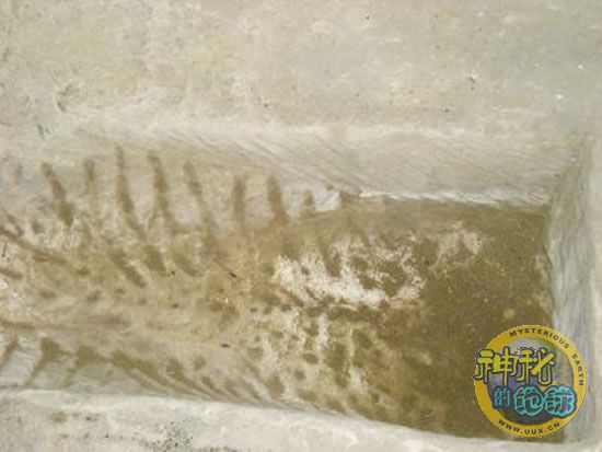 在离石屋群外300米左右的地方,记者看到一个长约1米,宽约60厘米的石槽,从地面倾斜延伸至深约30厘米的地下,村民称其为“蜕皮槽”。村民告诉记者,相传人衰老后,在“蜕皮槽”上可将老皮褪去,这时的皮肤如“出水芙蓉”一般光滑,可以返老还童。