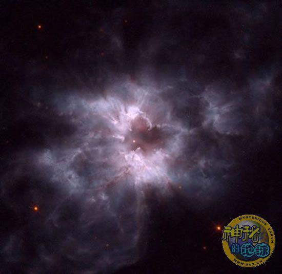 目前科学家所了解的一颗最炙热的白矮星,就位于名为NGC 2440的行星状星云的心脏部位,这个星云距离地球大约有4000光年。这颗星(接近照片中心的亮点)的表面温度大约是360000华氏度。由于白矮星的温度会随着年龄增长而降低,因此从它目前的温度来看,这颗白矮星一定比较年轻。围绕在它周围的炙热的紫色光环,是恒星在生命的最后阶段转变成一颗白矮星的过程中抛弃的剩余材料。