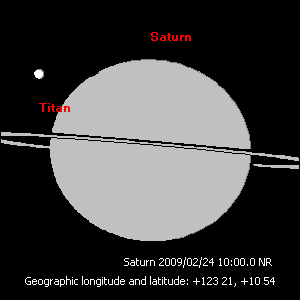 据中国科学院上海天文台消息,2009年2月24日土星会有四颗卫星发生凌星现象,届时土卫六、土卫一、土卫四和土卫二会从土星的前方经过,而我们也会同时看到这4颗卫星所投下的影子扫过土星云顶的景象。