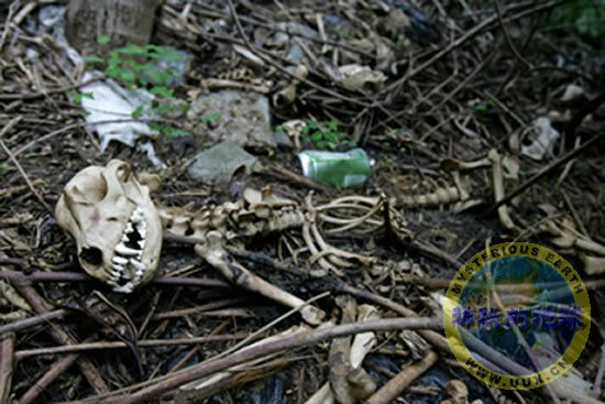 The skeleton of a decomposed dog lies among many others in rural Cayey, central Puerto Rico, on Thursday, October 18, 2007.