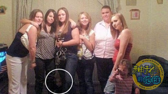女生合影中,在大腿之中出现了神秘的小孩面孔