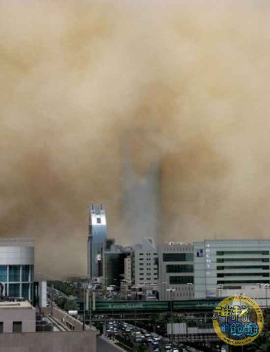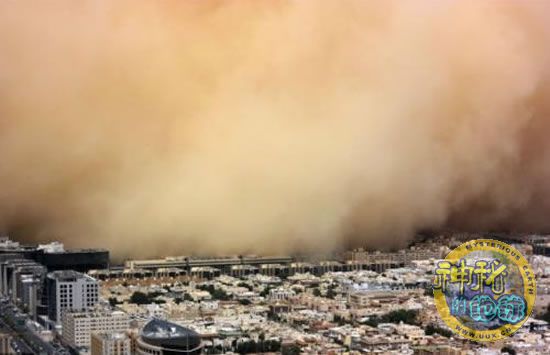 据英国《每日邮报》报道,起源于沙特阿拉伯沙漠的一场巨大的沙尘暴,10日席卷了沙特阿拉伯首都利雅得的大部分地区。滚滚黄尘铺天盖地而来,笼罩了利雅得近郊住宅区,由粗、细沙粒构成的巨大“天幕”挡住居民的去路。